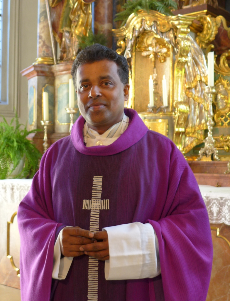 Nach dem Weggang von Dr. Uzoh und mehrmonatiger Aushilfstätigkeit durch Pfarrer Lucas haben wir wieder einen Pfarrvikar. Pater James Panickaruveettil stammt aus dem Bundesstaat Kerala in Indien und gehört dem Orden der Missionare des Heiligen Franz von Sales an. Nach seinem Studium wirkte er zwei Jahre als Missionar auf den Philippinen. Seit sechs Jahren ist Pater James in Deutschland und war in Grafing, Aschheim und Feldkirchen tätig. Am 1. Dezember hat er seine neue Stelle angetreten und wohnt in Unterföhring.