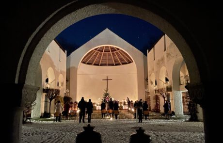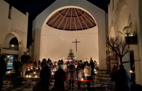 Eine stetig steigende Anzahl Gläubiger versammelte sich an den Donnerstagabenden des Advents im Innenhof unserer Kirche St. Johann Baptist, um bei Kerzenschein unter dem Sternenhimmel die Hl. Messe zu feiern.