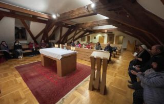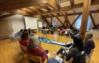 Zu dieser spektakulären geographischen Lage passte denn auch gut das Thema des Besinnungwochenendes der Pfarrgemeinderäte des Pfarrverbands Ismaning-Unterföhring:„Das Leben ist im Fluss“. Alles fließt, „panta rhei“, alles wandelt sich und ist in Bewegung, so wie auch wir in unserem Dasein einem steten Wandel unterliegen. Dieser Gedanke des fließenden Wassers führte auch zur Bibelstelle mit der Taufe Jesu im Jordan und zu Erinnerungen an die eigene Taufe.