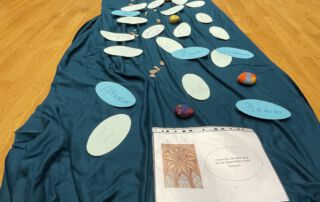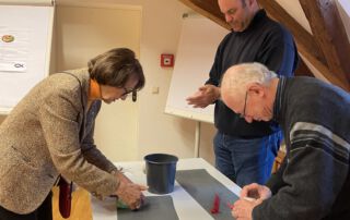 Weil die Referentin in die Besinnung, in das Nachdenken und Überlegen immer auch eine praktische Tätigkeit einbindet,haben wir als symbolisches Andenken an dieses Wochenende Flusssteine aus der Donau gesammelt und mit Filz überzogen – als Erinnerung an die Erkenntnisse und Impulse dieses inspirierenden Wochenendes.