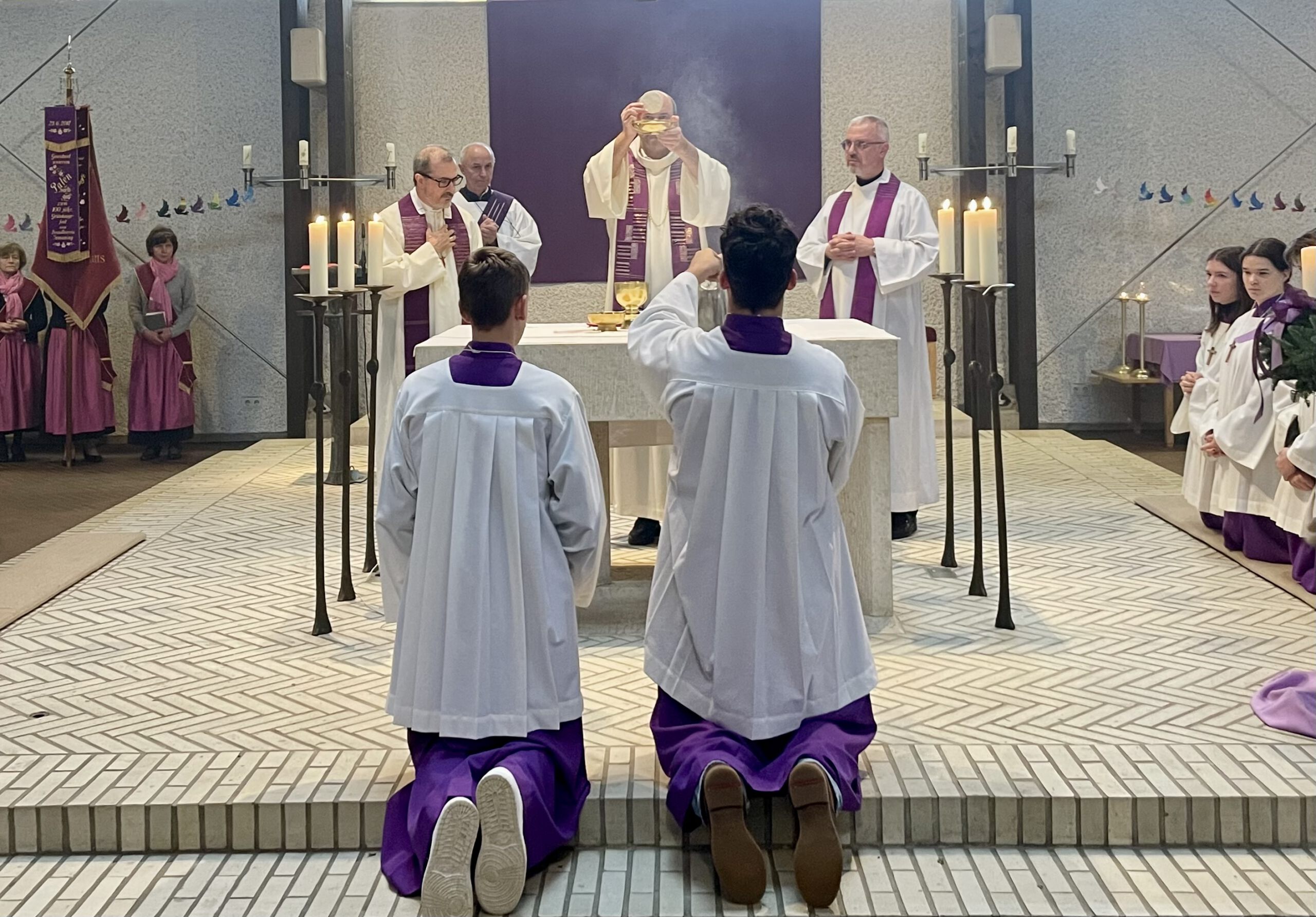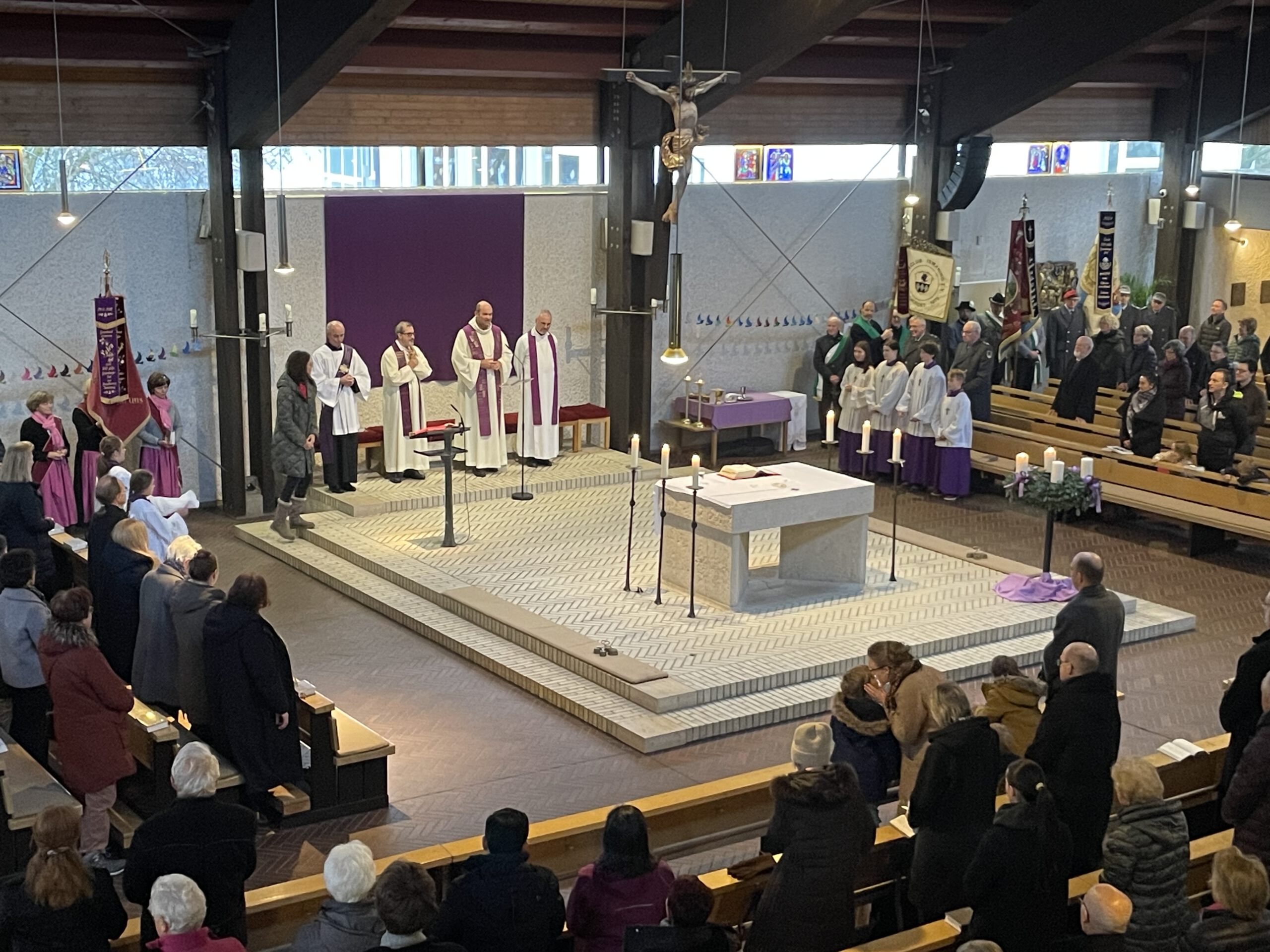 Der Gottesdienst, den Pfarrer Dr. Markus Brunner gemeinsam mit dem Gastbischof und dem Provinzial zelebrierte, war sehr gut besucht. Fahnenabordnungen verschiedener Ismaninger Vereine und Verbände verliehen der Feier einen festlichen Rahmen. Für die musikalische Gestaltung sorgten der Kirchenchor und der Männergesangsverein.